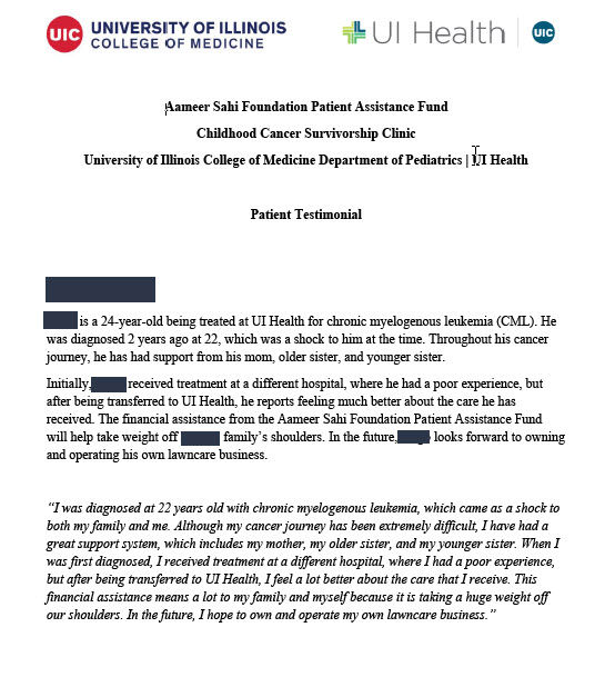 ASF will continue to carry Aameer's legacy forward and helping as many cancer patients as we can.